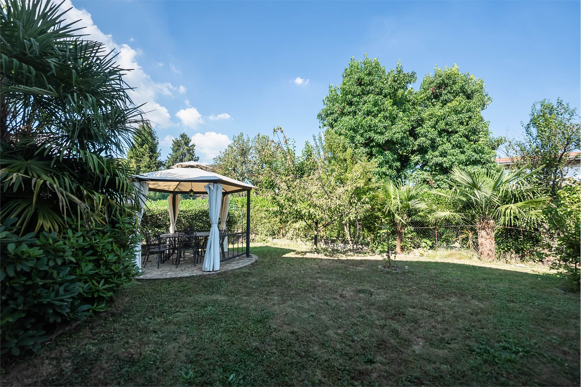 Il giardino, con impianto di irrigazione automatica, circonda l'abitazione su tre lati e una parte è attualmente coltivata come orto.